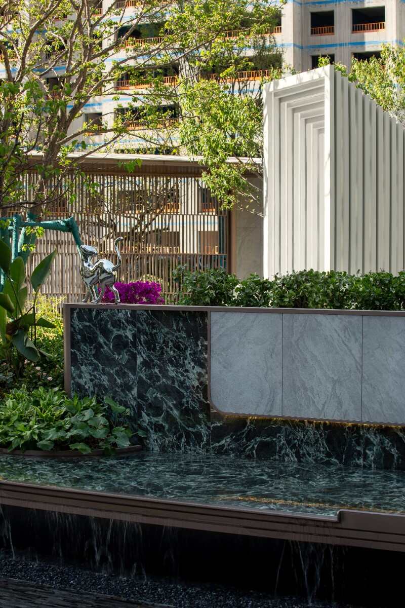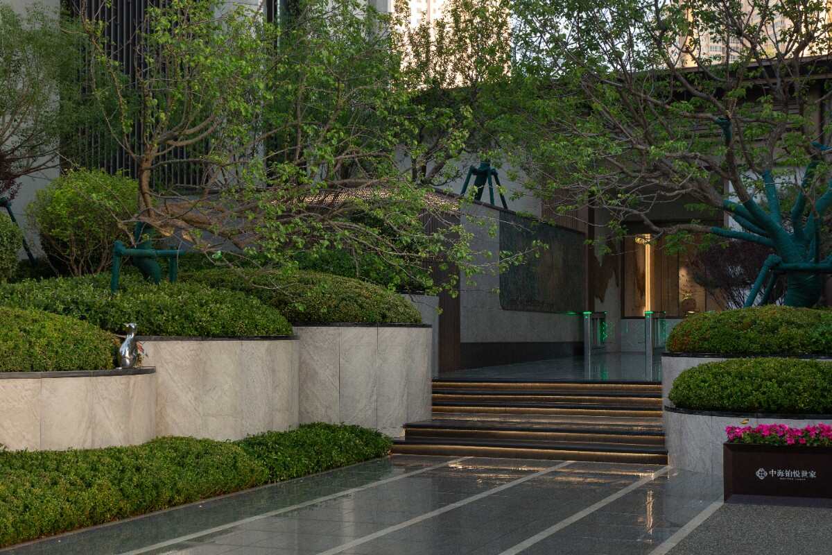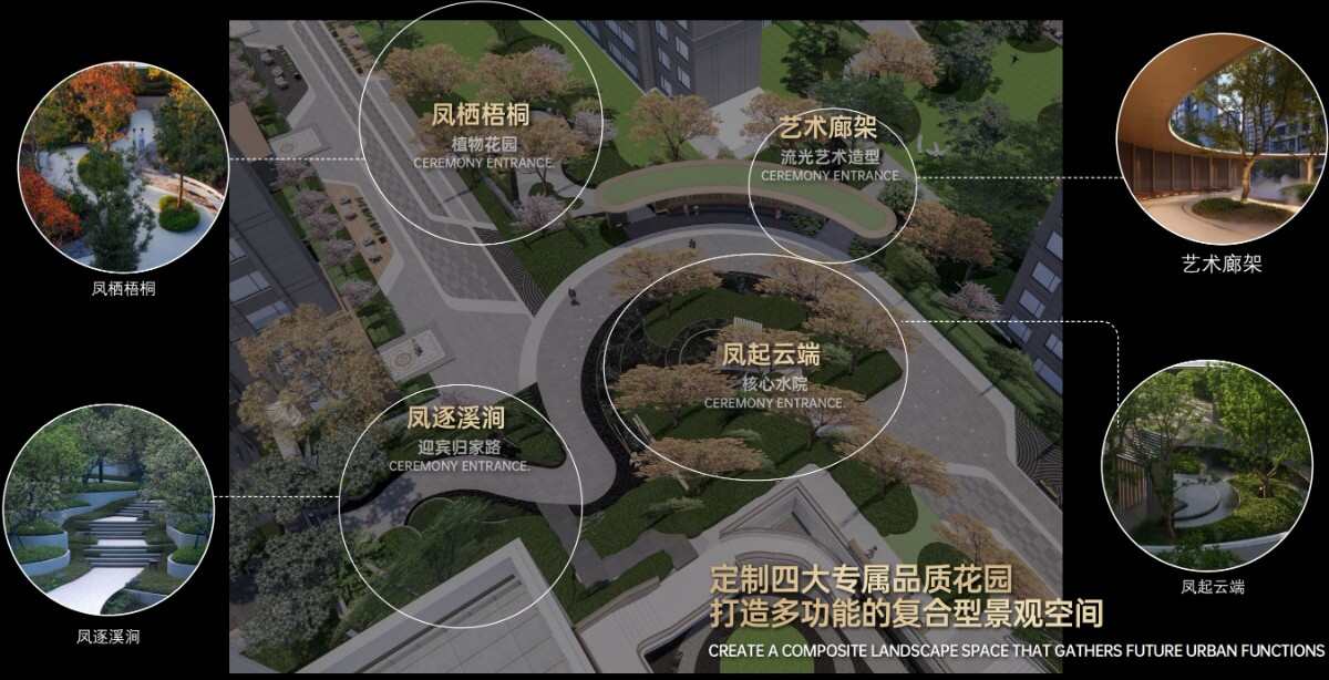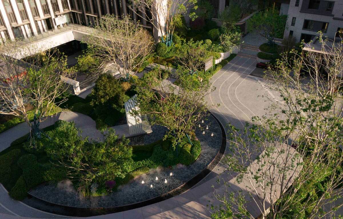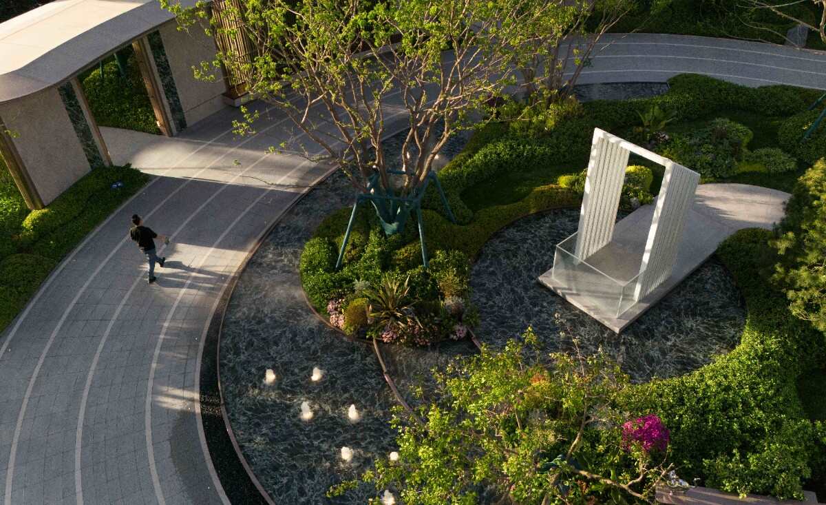 以鳳凰祥瑞為魂,借現(xiàn)代設(shè)計(jì)轉(zhuǎn)譯傳統(tǒng)意象。蘭州中?!ら芯陈涔P酒店式入口鋪陳歸家尊崇,鳳羽元素暗藏雅致細(xì)節(jié)。動(dòng)線串聯(lián)溪澗綠植與核心水院,疊水、老榆與藝術(shù)廊架相映,織就自然與藝術(shù)共生的活力場(chǎng)景。融材質(zhì)對(duì)比、光影變幻于生態(tài)美學(xué),讓輕奢格調(diào)邂逅鳳凰華美,筑就有儀式感亦有溫度的現(xiàn)代棲居景觀。